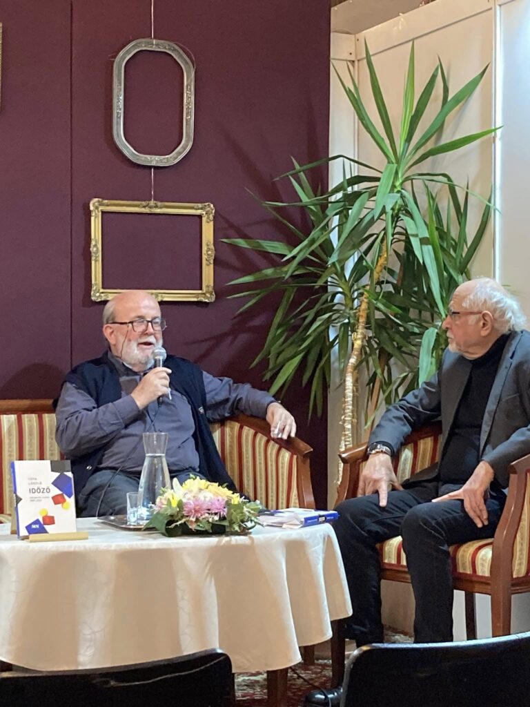 November 15-én, szombaton délután a 24. Győri Könyvszalon keretében, a Kisfaludy Színház pódiumszínpadán Jánosi Zoltán irodalomtörténész jó hangulatú beszélgetést folytatott Tóth Lászlóval, akinek válogatott verseit tartalmazó új kötete, az Időző nemrég jelent meg a Magyar Napló Kiadónál.