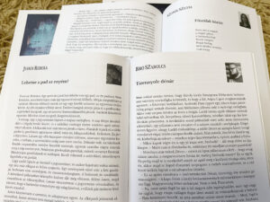 A Könyvek között rovatban Póda Erzsébet és Kovács Balázs kritikái reflektálnak szlovákiai magyar írók köteteire.